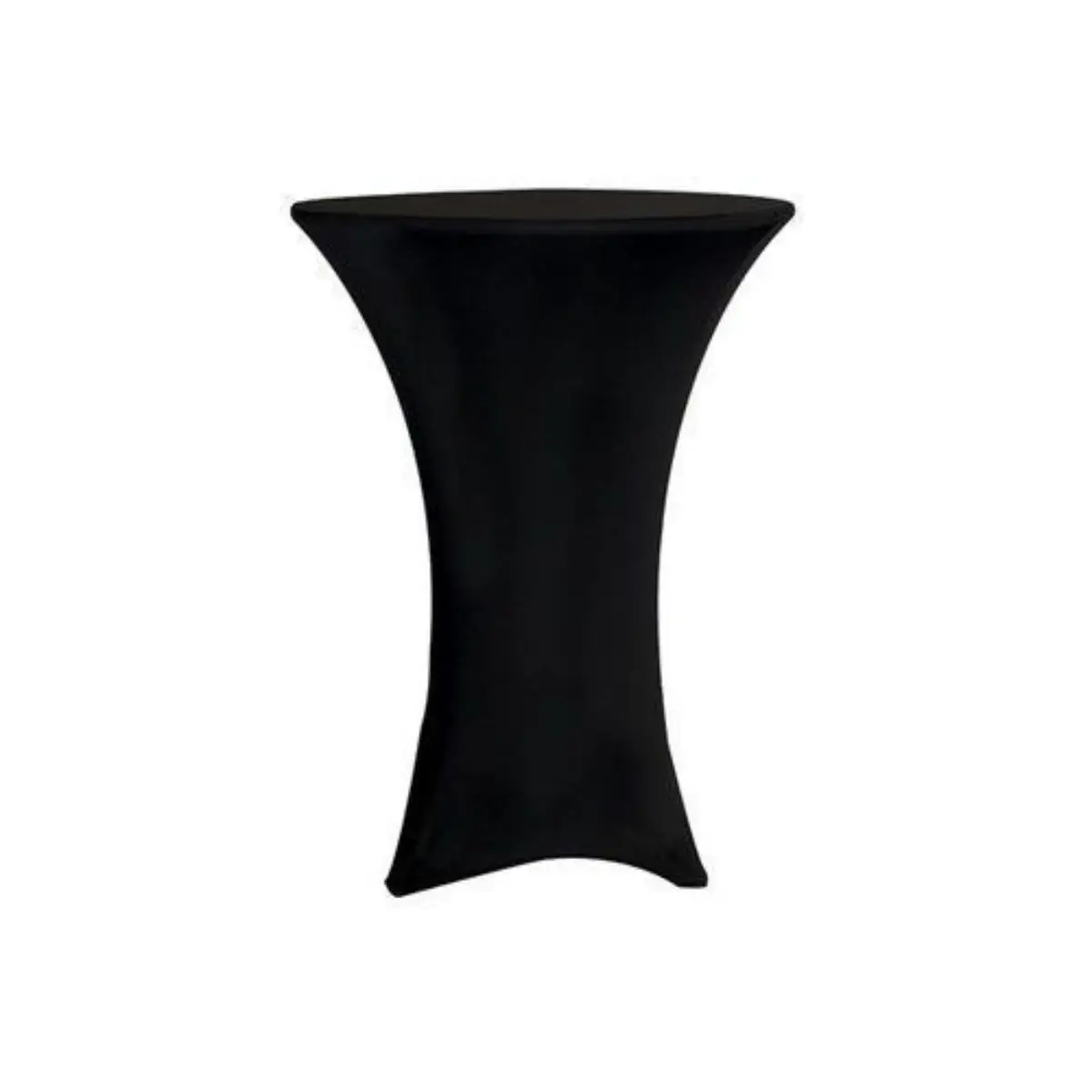 Transform your cocktail tables with this black stretch spandex slip cover. Sleek, fitted, and easy to maintain, perfect for weddings, parties, and corporate events.